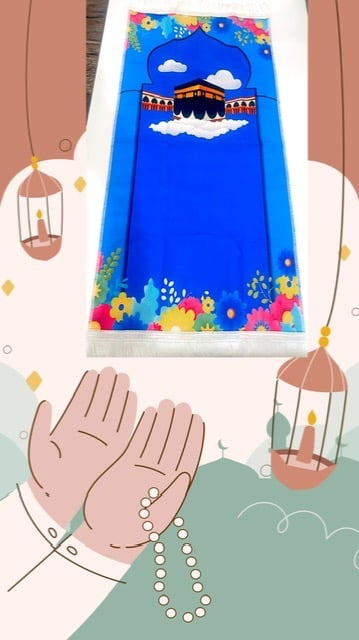 سجادة صلاة للأطفال و الصغار بتصميم الكعبة المشرفة و المسجد النبوي الشريف لتسهيل تعليمهم الصلاة بطريقة ممتعة ومناسبة لسنهم، وتشجيعهم على أداء الصلاة بانتظام، وتهيئة بيئة صلاة مريحة ومناسبة لهم.
