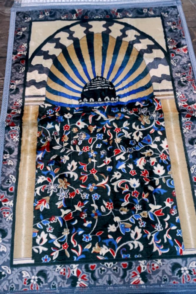 Prayer Rug - Prayer Rug with the Design of the Holy Green Dome, Grey Color, Price: 15