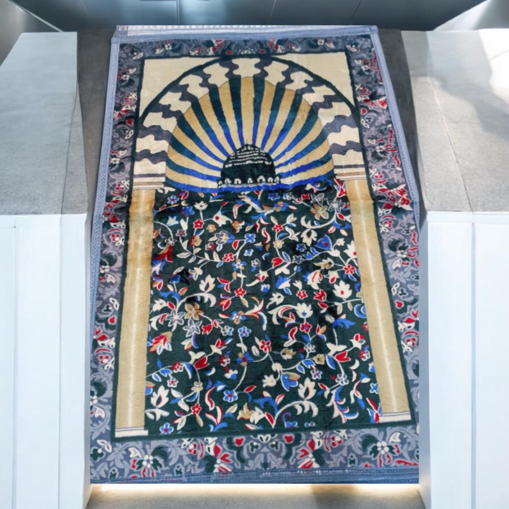 سجادة صلاة - سجادة صلاة سميكة بتصميم القبة الخضراء الشريفة اللون الرمادي